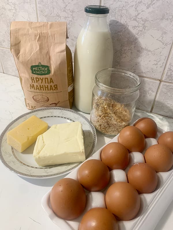 9. Смазать форму сливочным маслом и обсыпать сухарями. Выложить массу.