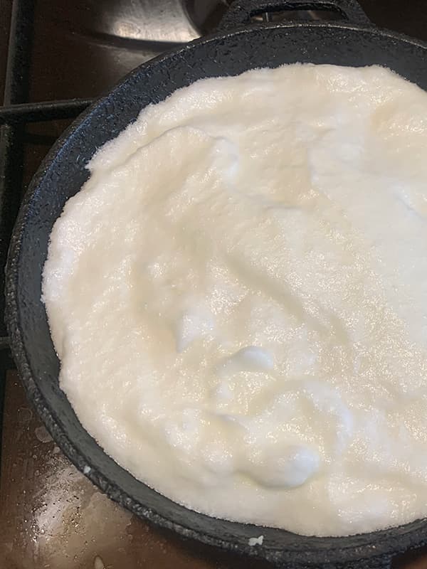 2. Влить молоко в кастрюлю, посолить в меру, растопить сливочное масло.