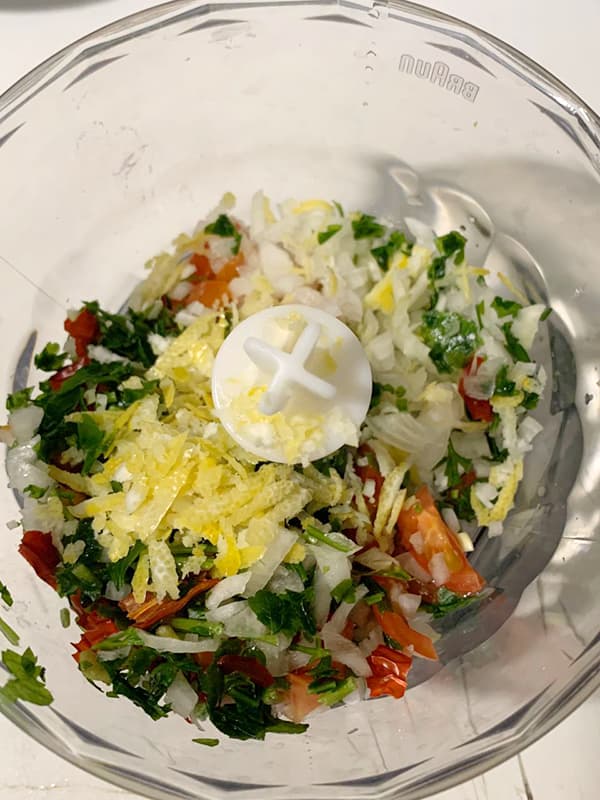 5. Все ингредиенты – авокадо, помидор, перчик, лук, чеснок и кинзу – поместить в чашу блендера и превратить в пюре.