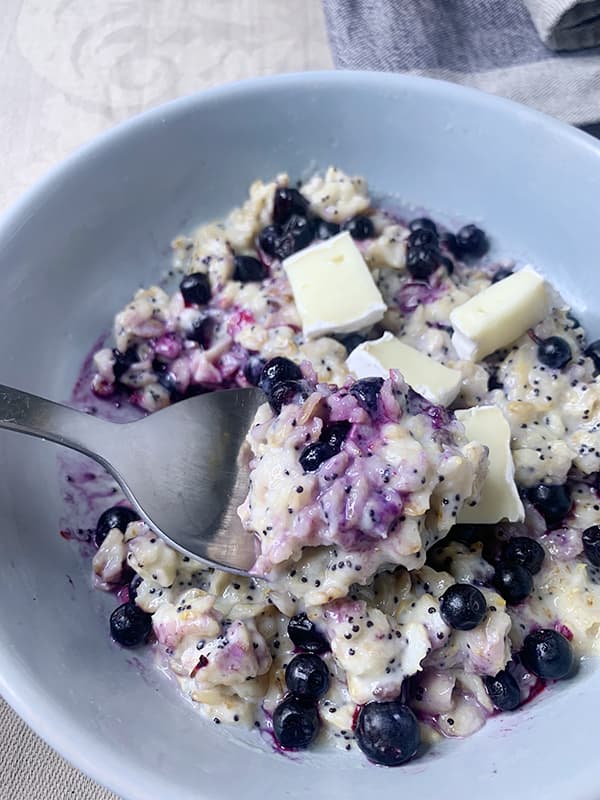 Красивая овсяная каша с ягодами, мягким сыром и маком