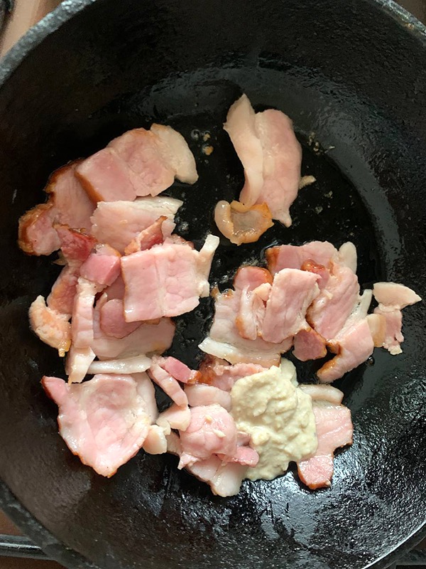 5. Обжарить грудинку.