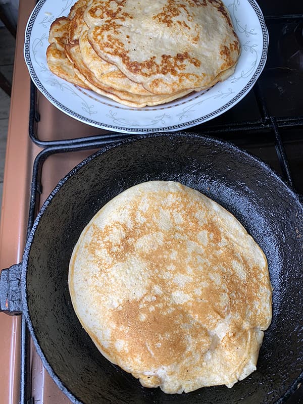 7. Блины наливать на всю сковороду. Накрывать крышкой и обжаривать с обеих сторон. Сковороду предварительно смазать маслом.