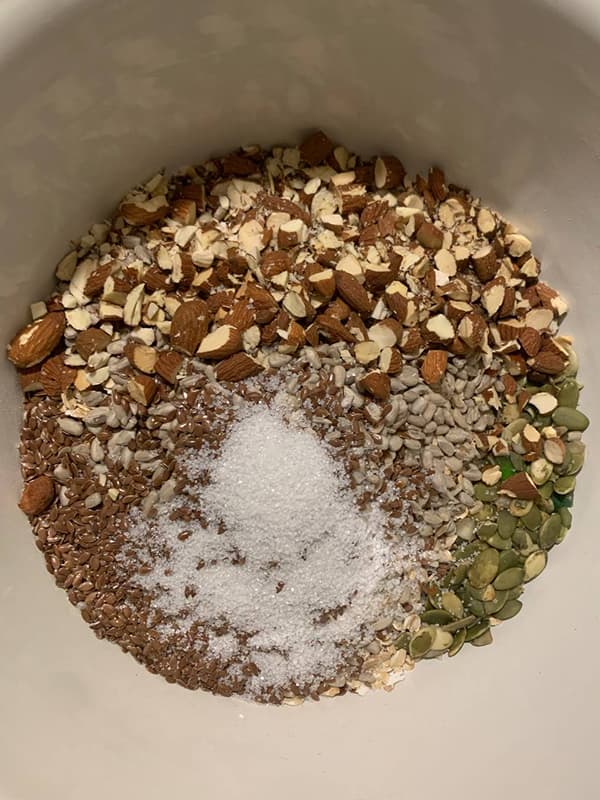 3. Смешать все сухие ингредиенты, исключив сухофрукты (при наличии таковых).