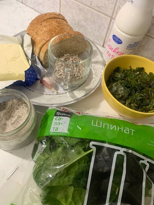 - 400 г шпината (предлагаю смешать с щавелем в удобной вам пропорции);