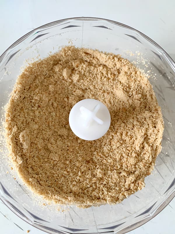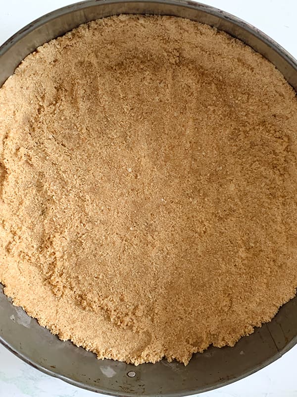 4. Смешать печенье, масло и сахар. Выложить в форму для запекания покрывалом с высокими бортиками. Можно пальцами утрамбовать.