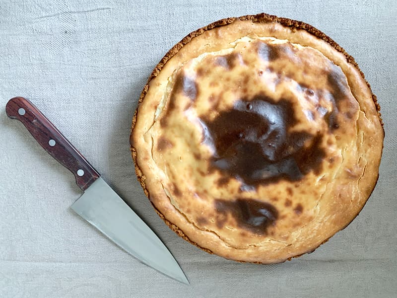 10. Выпекать до образования легкой карамельной корочки. В идеале творожному пирогу нужно дать остыть до тех пор, пока остывает духовка. Мой совет: готовить вечером и дать пирогу спокойно переночевать в духовке.