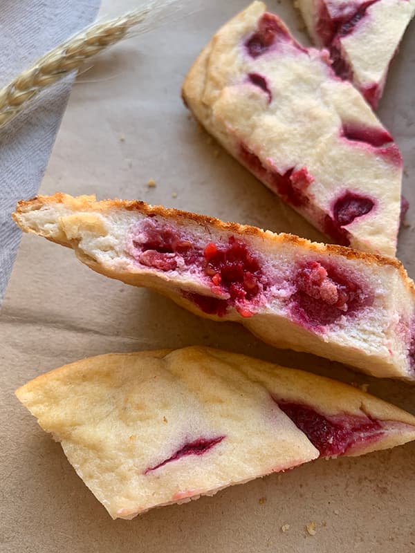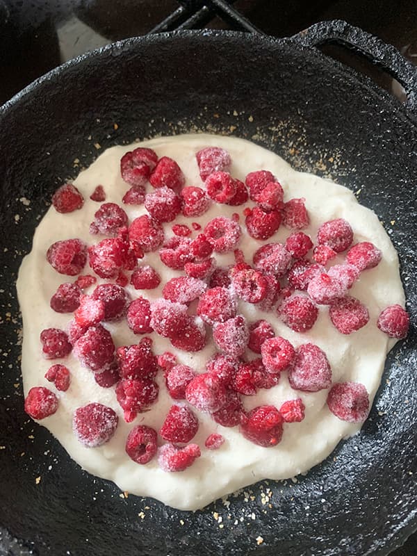 4. Вылить половину теста в небольшую форму, положить ягоды. Залить оставшимся тестом.