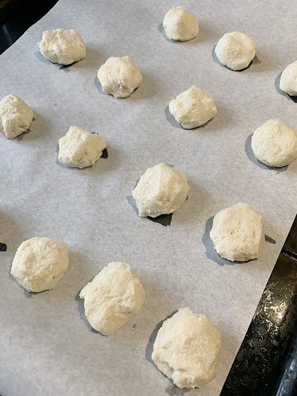 6. На противне расстелить пергамент. Скатать маленькие шарики и выложить так, чтобы они не касались друг друга.